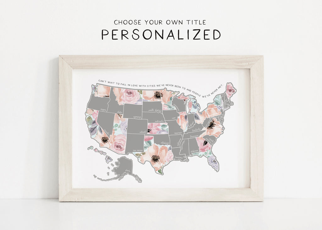 Personalized Scratch Your Travels Romantic Florals USA Map - $34.99