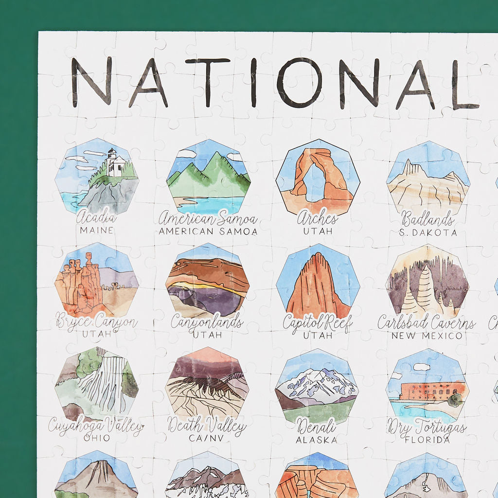 You get two puzzles in one! This awesome double-sided puzzle features 62 hand-drawn illustrations of the amazing US National Parks. Solve them both for hours of fun!