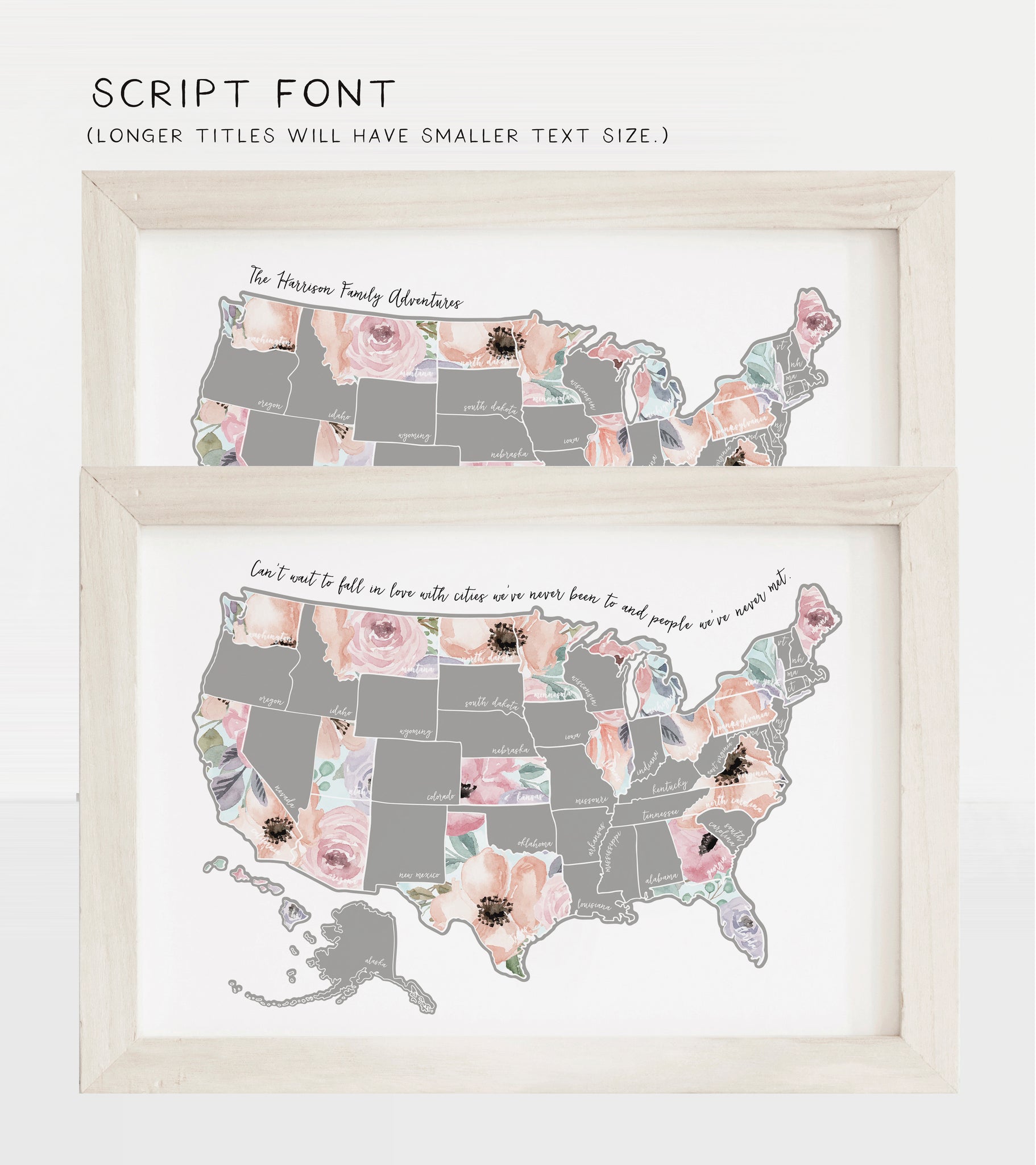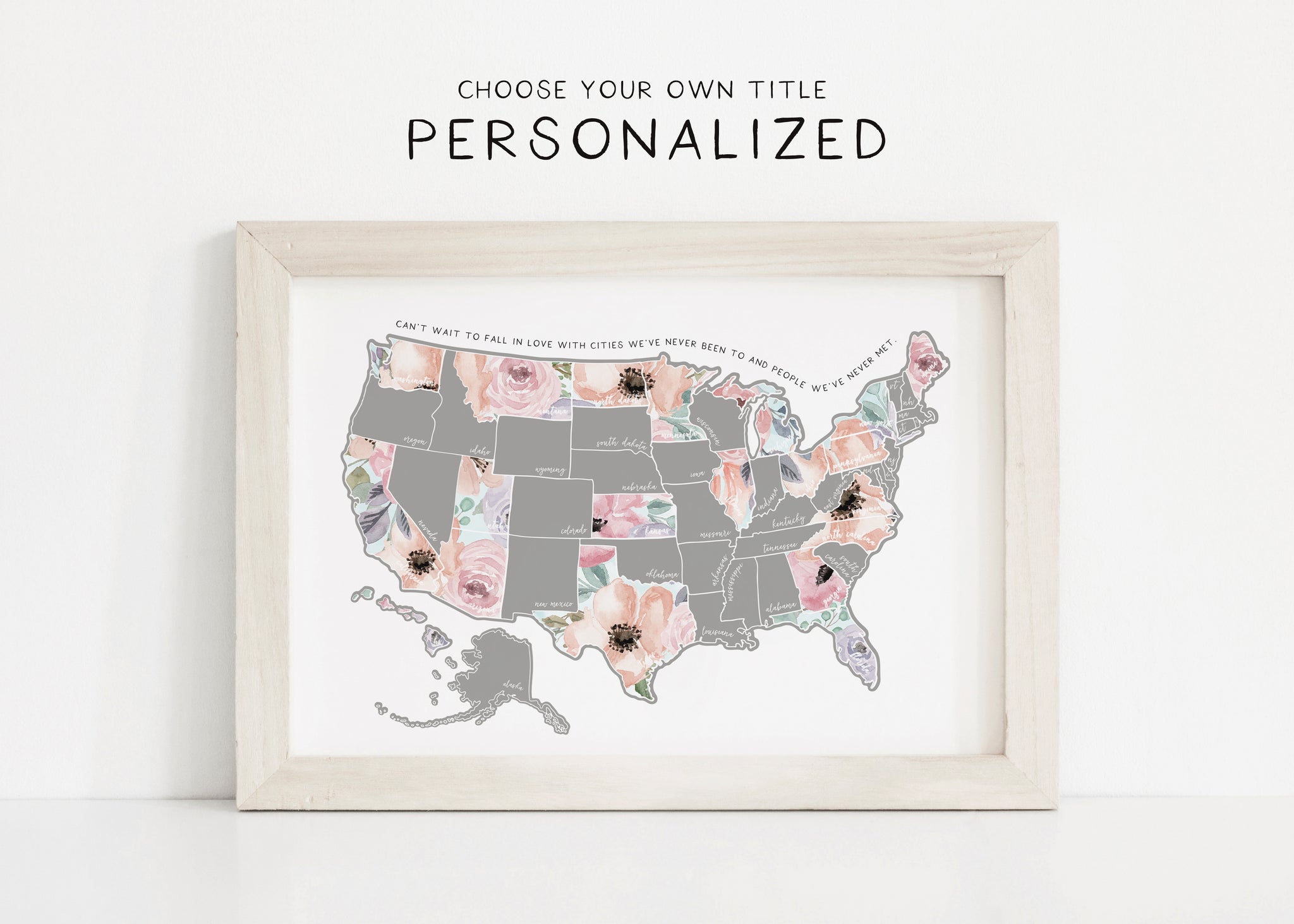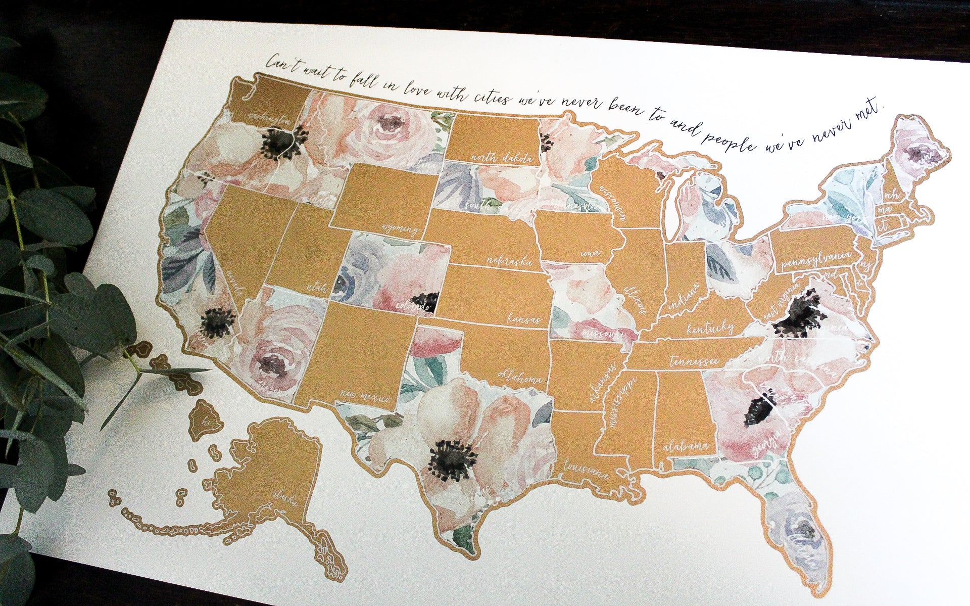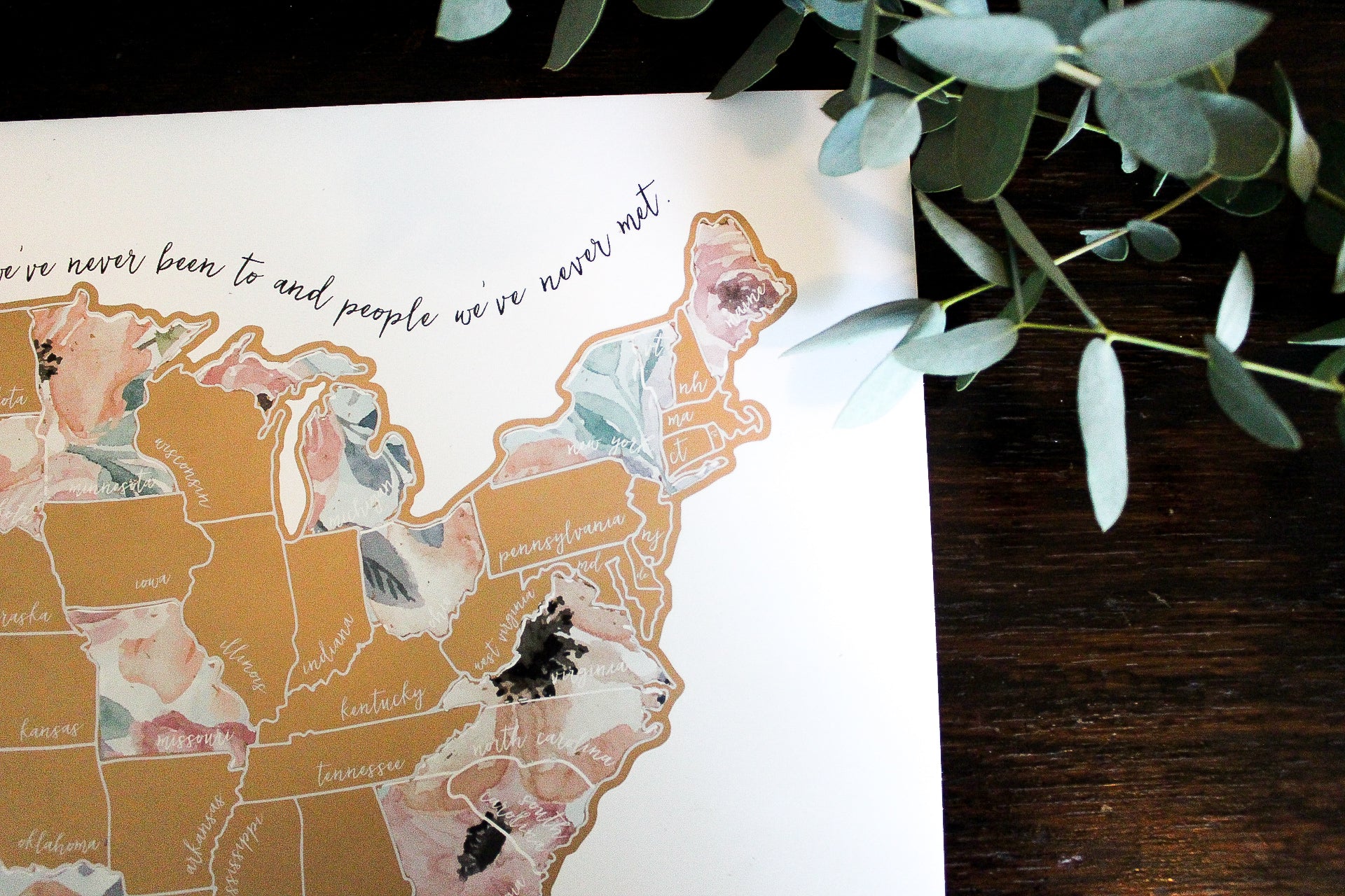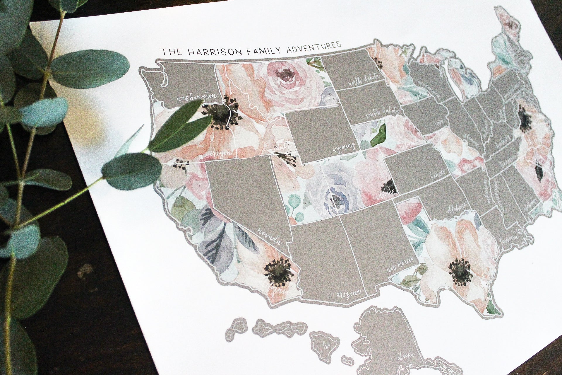 Personalized Scratch Your Travels Romantic Florals USA Map