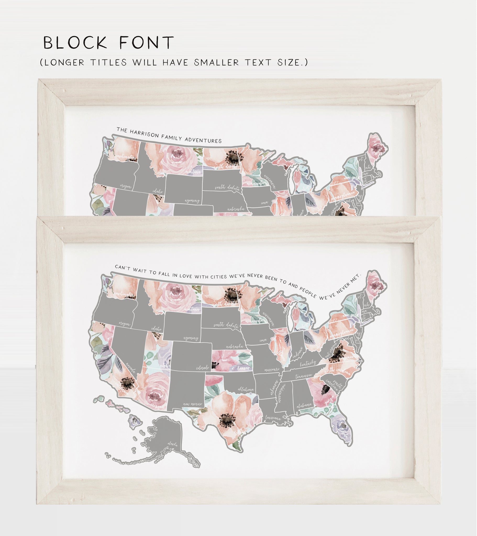Choose from script or block font. In the order notes section at checkout, enter your personalization EXACTLY how it should be printed (please make sure there are no typos!) I am happy to accommodate longer titles, quotes, etc (it will be printed along the shape of the map itself, please see the example image to see how this is done.). Please note that I may need to reduce font sizes for titles longer than 57 characters.