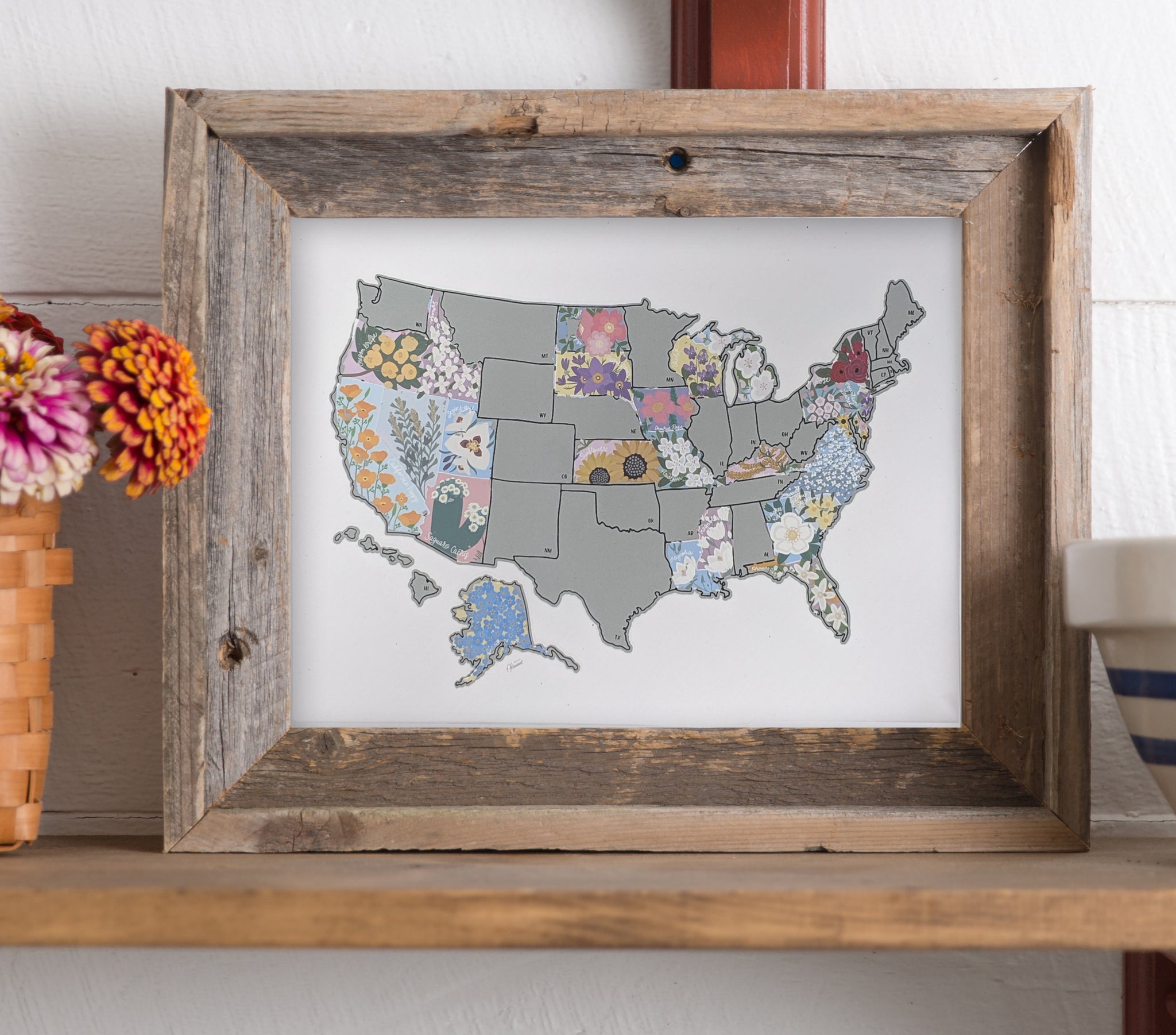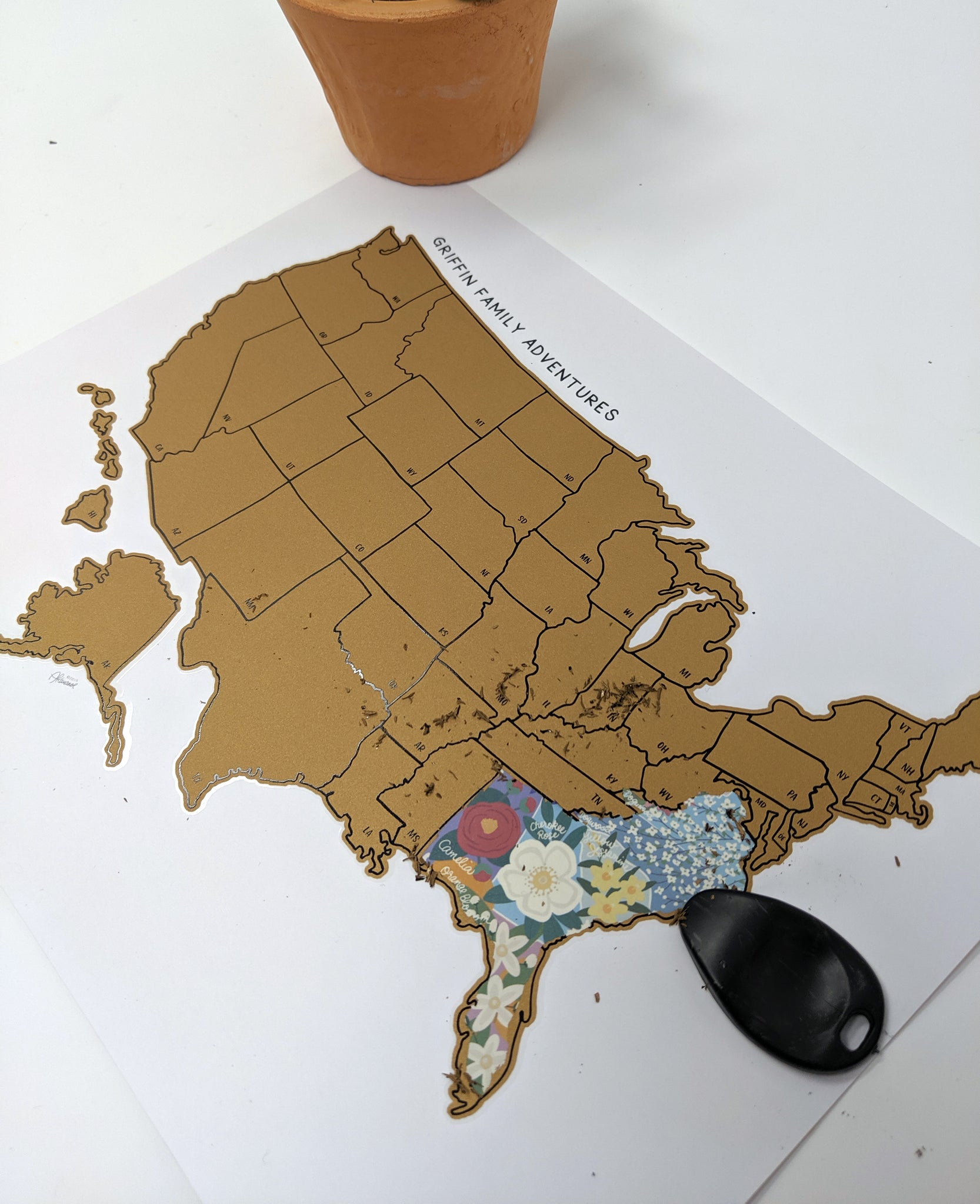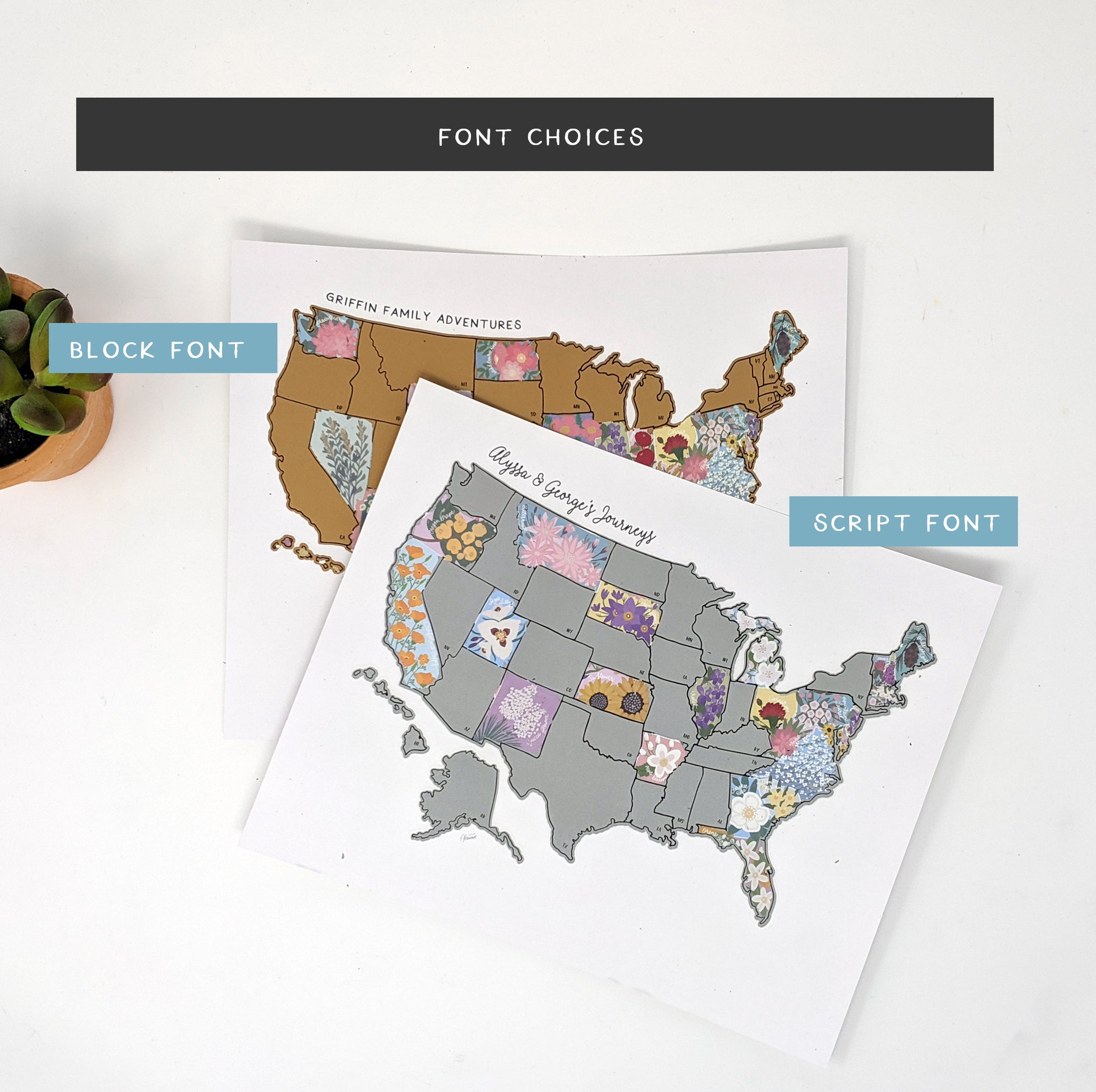 Each flower was hand-drawn by me. For the majority of the states, I hand-wrote the name of each flower on the artwork, so as you scratch off each state, you'll know what the flower's name is. Each map will come rolled in its own tube along with an instruction sheet and scratching tool that's very comfortable to use!