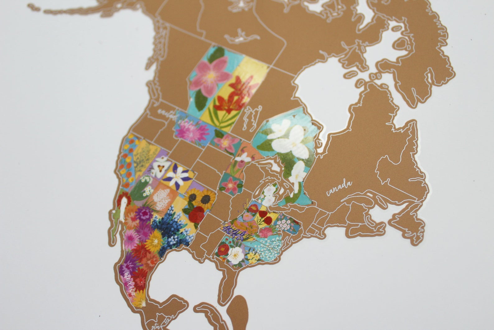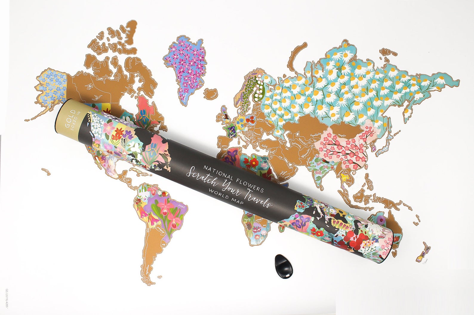 1) 14x11 in National Flowers World Map with gold scratch-off*