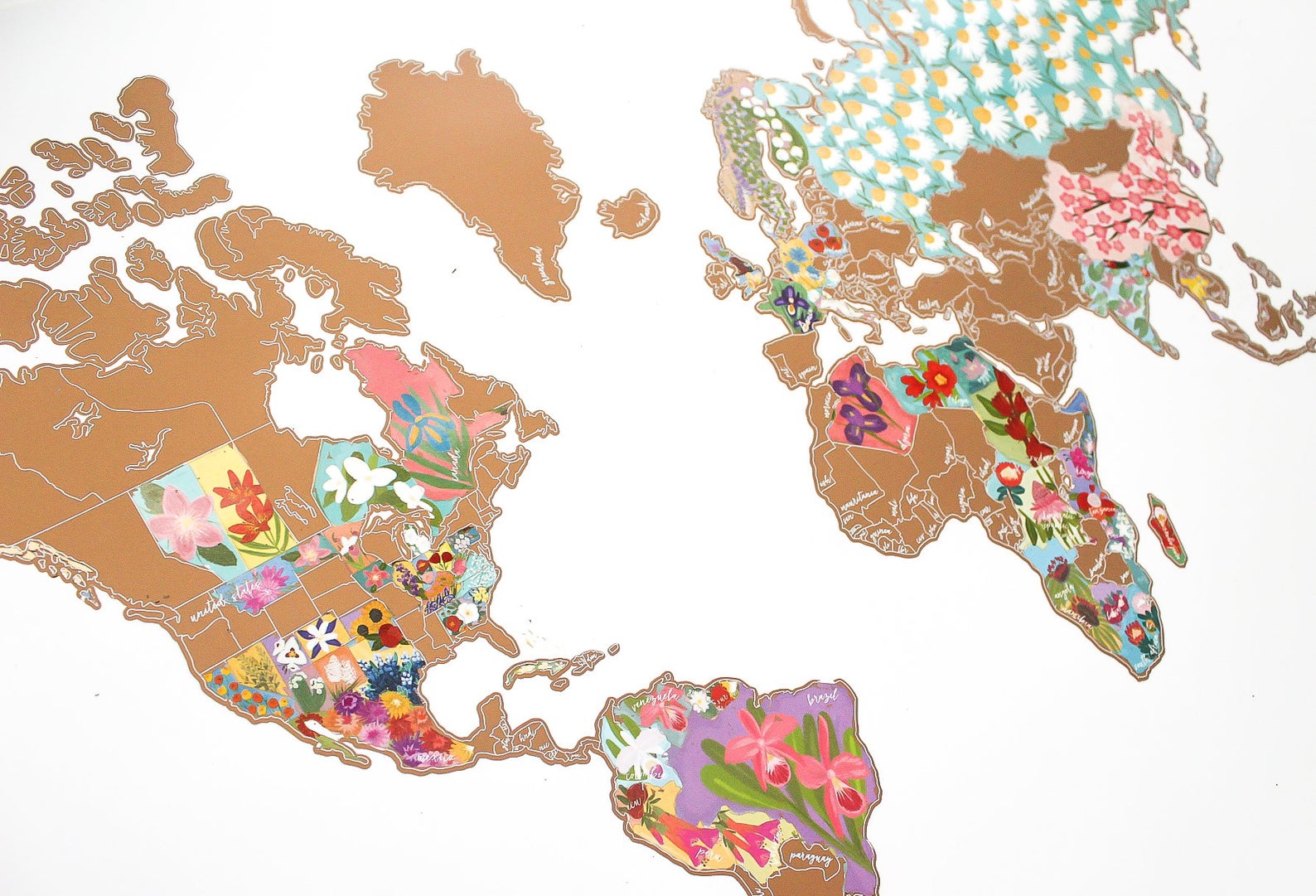 The first of its kind, my Scratch Your Travels National Flowers World Map features the official flowers designated by each country. This map took me almost a year to research, draw, and complete - and I am so happy with how it turned out! It's so vibrant and cheerful - you'll also love how I went a little obsessive and included region-specific flowers for the US States, Canada, Australia, and the UK!