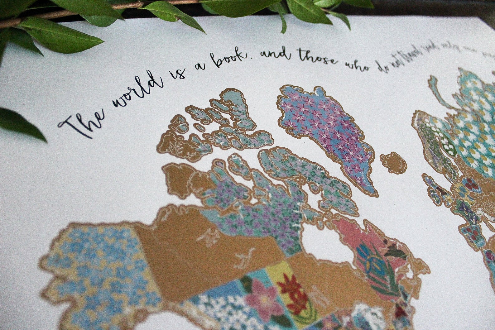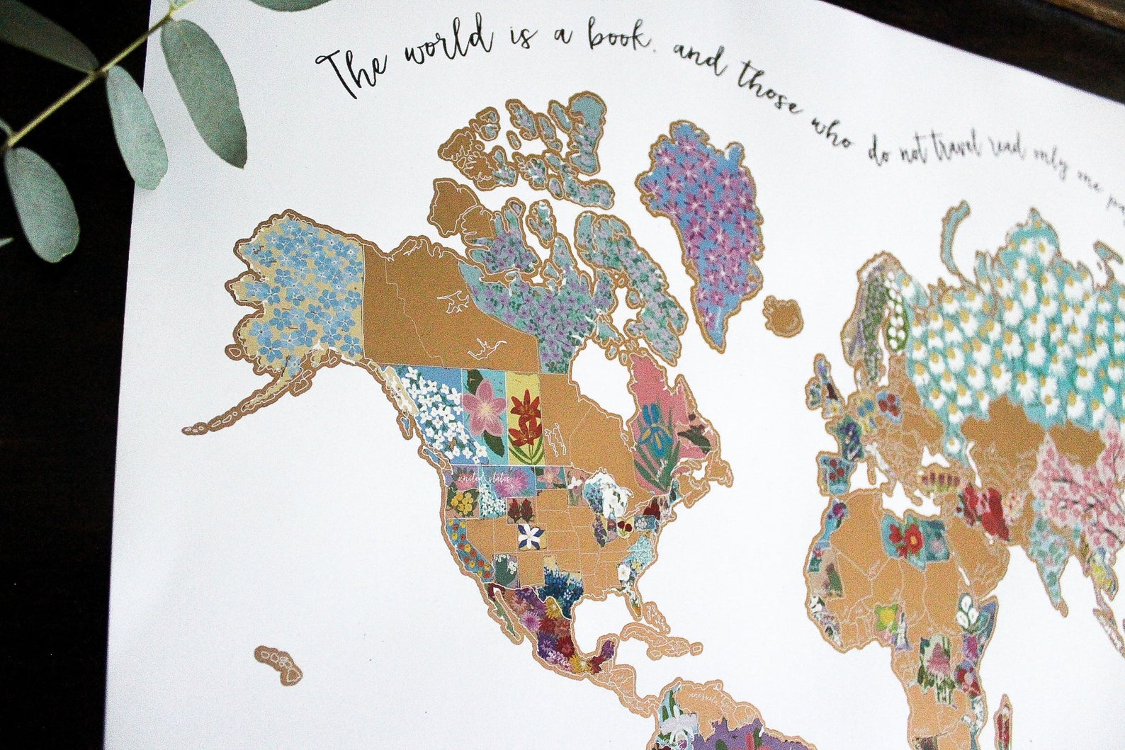 The first of its kind, my Scratch Your Travels National Flowers World Map features the official flowers designated by each country. This map took me almost a year to research, draw, and complete - and I am so happy with how it turned out! It's printed in the USA, and so vibrant and cheerful - you'll also love how I went a little obsessive and included region-specific flowers for the US States, Canada, Australia, and the UK!
